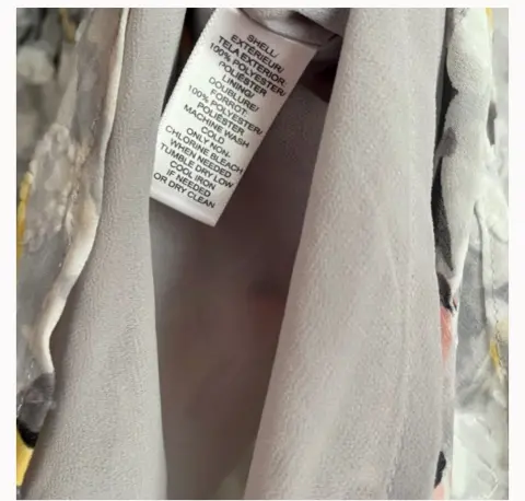 Hermosa blusa con textura, estampado floral en tonos gris y pastel. Con volados en mangas, botones dorados al frente. Con forro no se transparenta
