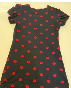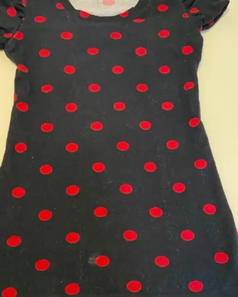 Blusa lunares. Blusa azul marino con lunares rojos, mangas abullonadas, acinturada.