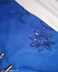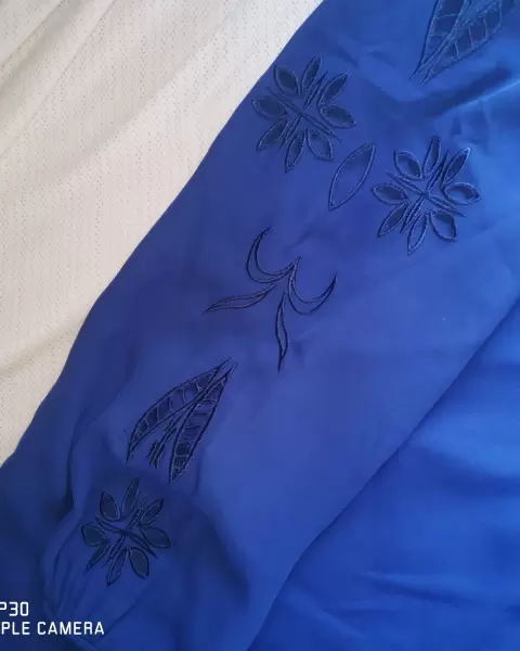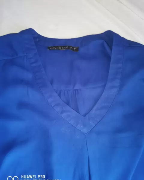 Blusa manga 3/4 azul rey .. Queda muy bien a una talla 34 mediana La tela no estira .Trae flores caladas en la manga que le dan un toque muy diferente a la prenda .Cualquier duda estoy pendiente
