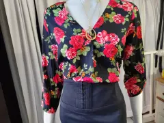 Blusa estampado en flores, manga 3/4, con su botón para hacer la manda más corta talla m