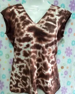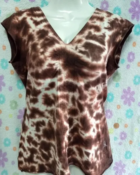 Bonita blusa de algodón tipo tie dye, cuello V, manga corta, en perfecto estado.