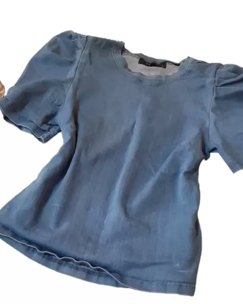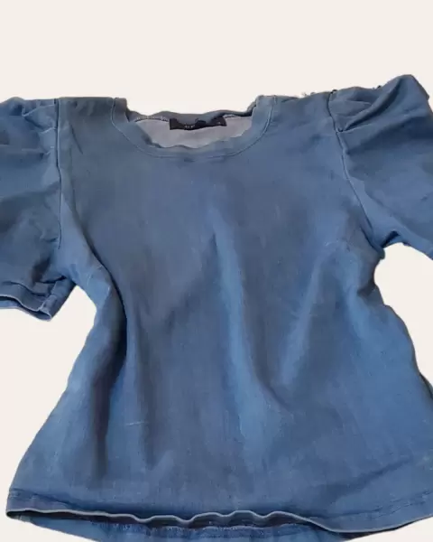 Blusa manga farol mezclilla. Blusa casual tela jeans suave, strech, cuello redondo, queda muy bien con cualquier tipo de pantalón o falda