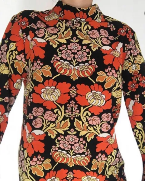 Blusa de manga larga ancha,estampada, tela muy suave, cierre atrás.