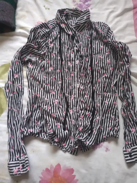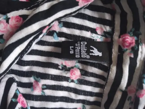 Hermosa blusa manga larga, rallada blanco y negro. Marca cuidado con el perro talla grande sin detalle.