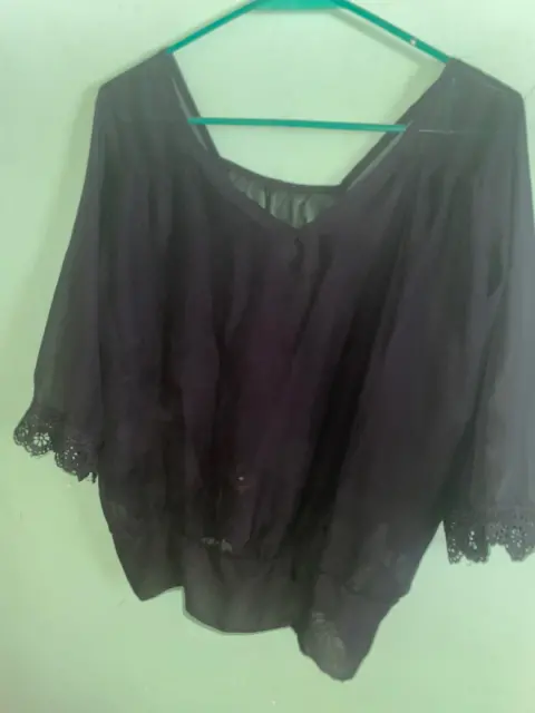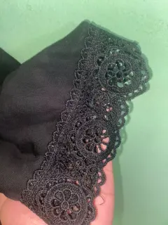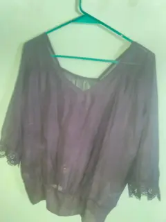 Blusa de manga larga color negra, con corte tipo V en el pecho, en la parte de atrás es un poco transparente