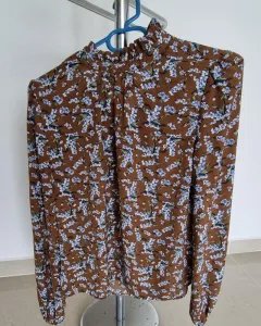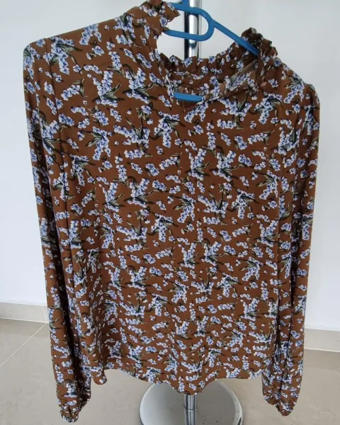 Blusa manga larga. Blusa con cuello alto y olanes. Manga larga no es ajustada. Formal