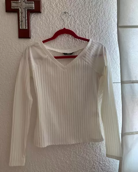 Blusa manga larga blanca. Blusa manga larga con cuello en v