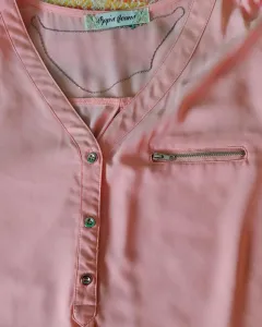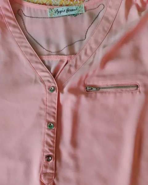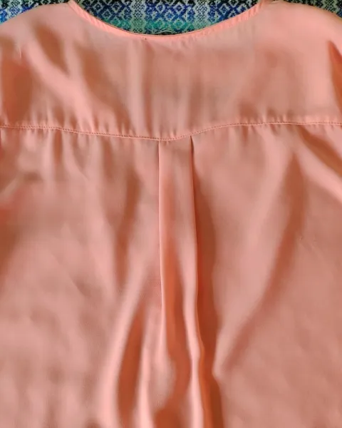 Bonita bluza color durazno, la manga se ouede hacer de 3/4, es tela 100 % poliester, talla grande. Bella prenda para uso casual (los accesorios no se incluyen en la venta).