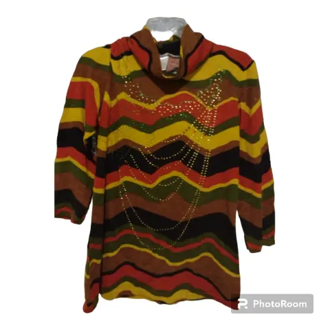 Blusa manga larga cuello 🐢. Estampada, manda larga, cuello de tortuga, piedras en la parte de enfrente, talla mediana de mujer, color caqui.