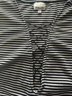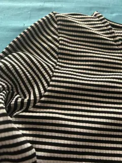 Blusa manga larga de rayas blanco con negro. Blusa de tela strech Escote cruzado.Talla Chica