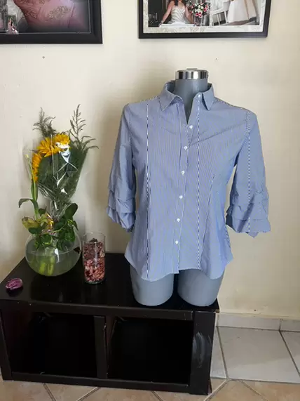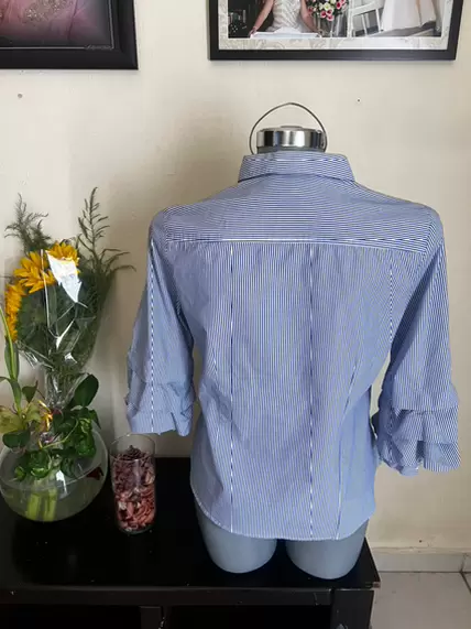 Blusa Manga Tipo globo. Blusa tipo camisa , con botones al frente , manga tipo globo , con raya tipo gis