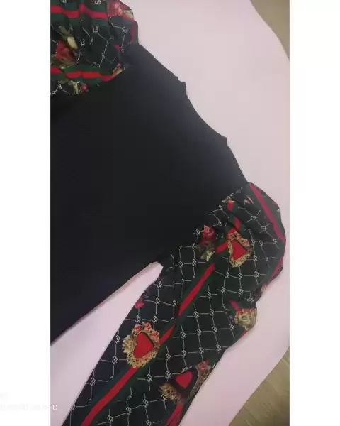 ❣️ Preciosa blusa negra con mangas súper abombadas y estampadas con corazones y cadenas, con puños negros.No tiene marca ni talla, pero equivale a tallas chica - mediana.EstiraMedidasHombro 39 cmAxila 40 cmCintura 37 cmLargo 52 cmNueva sin etiqueta