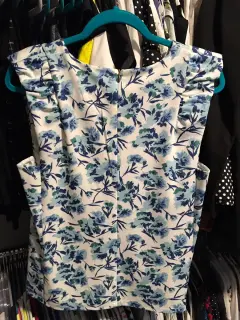 Linda blusa con mangas semi globo, muy peculiares por el tipo de costumes. Diseño poco común. La tela tiene textura y se ajusta bien al cuerpo. Cierre en la espalda. Estira un poco. Medidas: axilas 48cm, cintura 47cm, cadera51cm, largo 61cm. Nueva.
