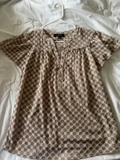 Blusa manga corta marca JULIOTalla 6Medida axila-axila 50cmColor café claro con bordado de detalles en blanco Tela frescaUsada en 2 o 3 ocasionesSin detalles