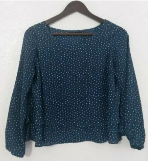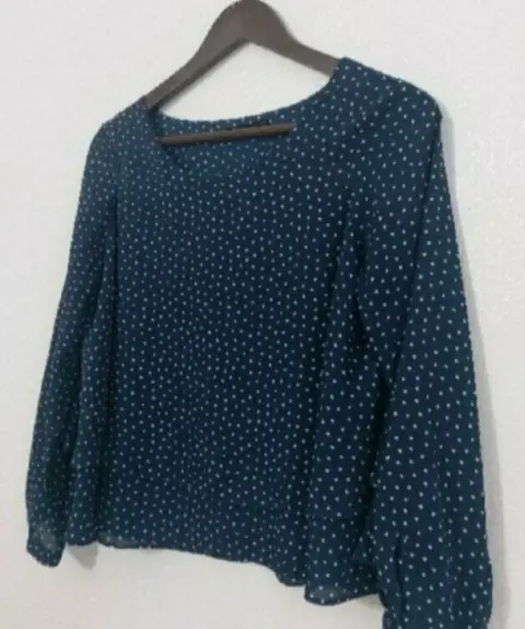 Blusa marino tipo Crop. Bellisima ! Como Nueva. Sin detalles y en perfectas condiciones.Blusa-Crop lunares (son cuadritos) y manga 3/4. No tiene strech. Tiene doble tela al frente (corta y larga).De axila a axila: 50 cmLargo crop: 46 cmLargo manga: 51 cm