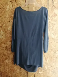 Blusa de maternidad, tono azul petróleo, manga larga, axila 51 cms. largo 76, 66% tela modal y 34% poliéster.