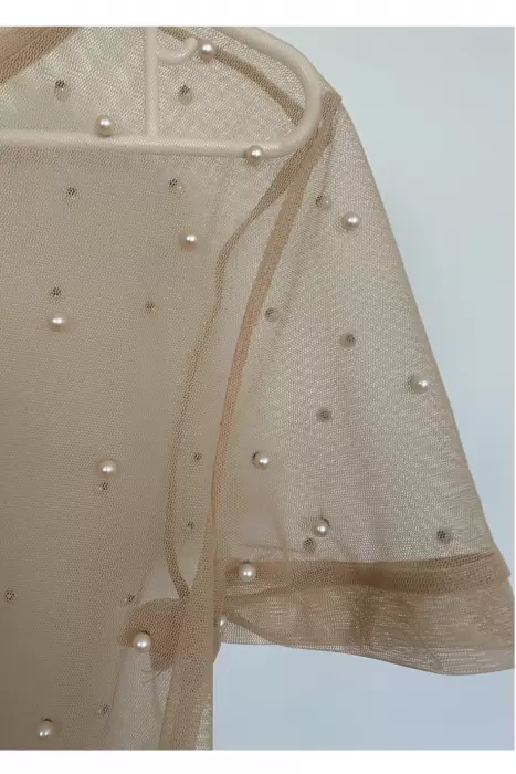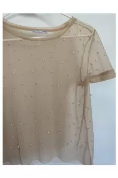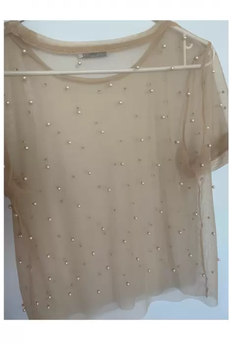 blusa mesh con perlas. ✨ TALLA: S / MEX 26💜 blusa con aplicaciones de perlas🤍 blusa de mesh color nude✨ no queda apretada, queda suelta. es muy ligera ✨