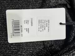 Blusa talla chica manga larga tejido metálico negro plateado con escote, se ajusta pegadita, muy sexy! Nueva con etiqueta. Sin detalles.