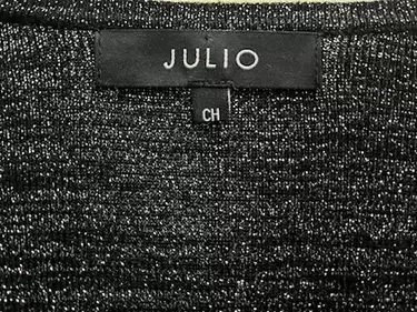 Blusa metalizada nueva julio escote. Blusa talla chica manga larga tejido metálico negro plateado con escote, se ajusta pegadita, muy sexy! Nueva con etiqueta. Sin detalles.