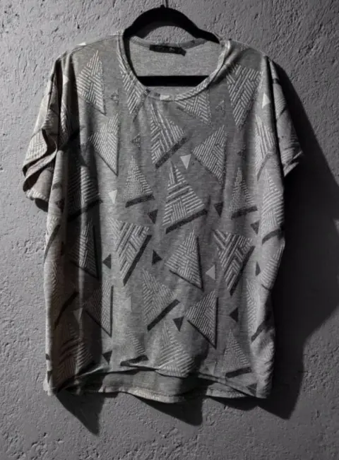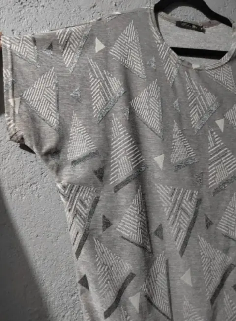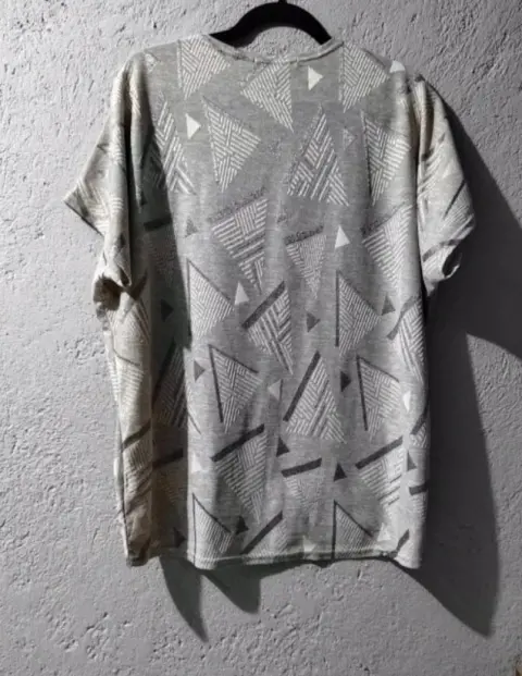 Blusa color GrisCon estampado de figurasTalla Ch, es over side, queda perfecto a una talla G. Marca Mochini