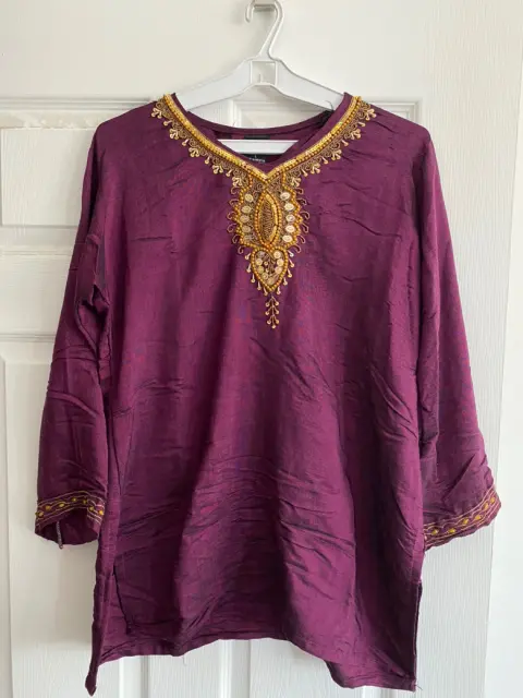 Blusa morada estilo árabe.. Blusa morada estilo árabe, con brillos dorados en el cuello, tela de calidad y muy cómoda y transpirable.