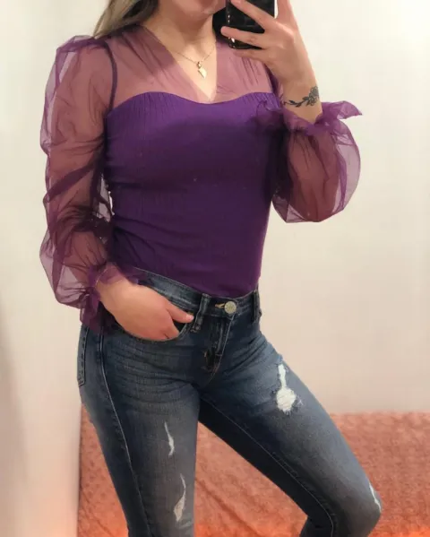 Blusa moradita. Esta bellísima esta blusa, súper cómoda, sexy casual, es Unitalla. 💕
