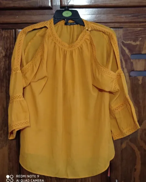 Blusa Mostaza. Blusa formal mostaza tiene escote en los hombros lo que te hace lucir muy coqueta, es extragrande