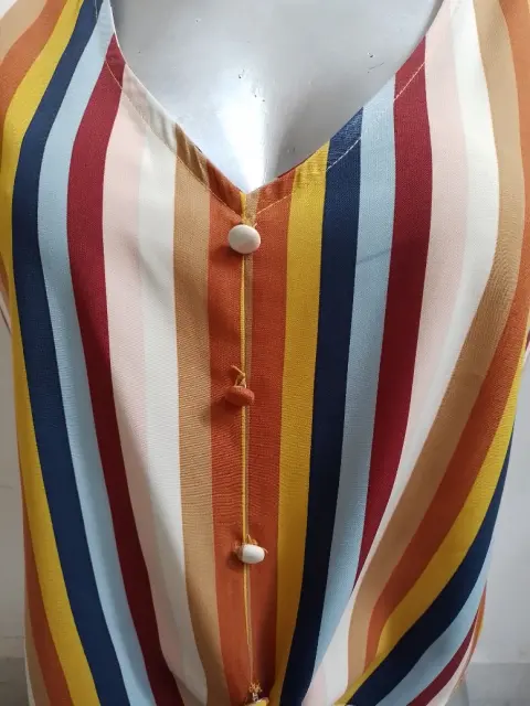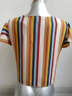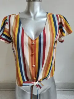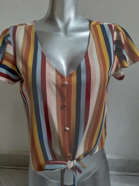 Blusa Multicolor. Linda blusa 👚 juvenil, talla chica, con cintas de amarre, rayada, multicolor poco uso, el detalle es en los botones, tiene unas puntadas, que no afecta el uso, para armar un lindo outfit