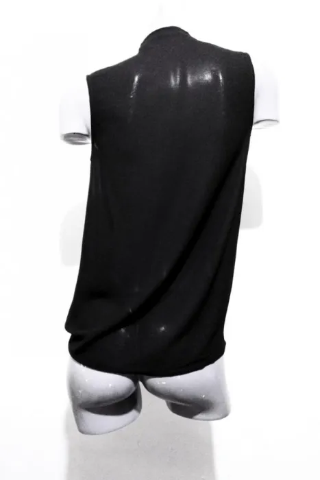 COLOR NEGRO, TEXTURA TIPO GASA, TALLA CHICA, MEDIDAS DE UNA CARA: AXILA A AXILA 45, LARGO 68 CM.