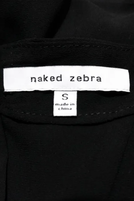 BLUSA NAKED ZEBRA CHICA. COLOR NEGRO, TEXTURA TIPO GASA, TALLA CHICA, MEDIDAS DE UNA CARA: AXILA A AXILA 45, LARGO 68 CM.