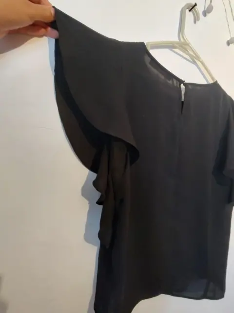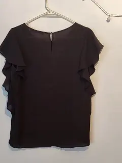 Blusa negra con mangas cortas y detalles en las mismas tipo olanes,no tiene ningún detalle está completamente nueva
