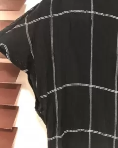 Blusa negra a cuadros. Blusa negra a cuadrosMarca IvonneTalla 10, entre M y G72% viscosa, 28% poliamidaManga hombros caidosOlanes en parte inferior