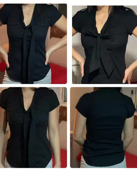 Blusa negra Armani ExchangeTalla: XS, manga corta, dos bolsillos al frente y ajustable al cuerpo.Medidas: 39.5 cm de axila, 36 cm de hombros, 60 cm de largo. Sin detalles.