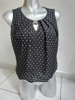 Linda blusa 👚 juvenil, manga escotada, color negro con bolitas blancas, talla chica, marca Contemporáneo, poco uso, sin detalles, para armar un lindo outfit
