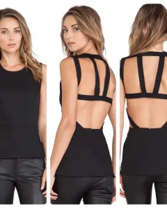 Blusa negra con escote en la espalda BCBG MAXAZRIA