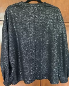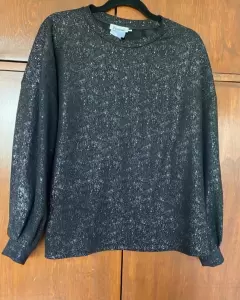 Blusa negra con glitter. Blusa con mangas aglobadas, es talla L, pero queda a XL. Está muy linda y combina con muchas prendas.