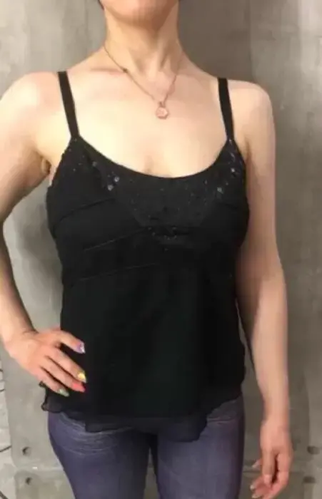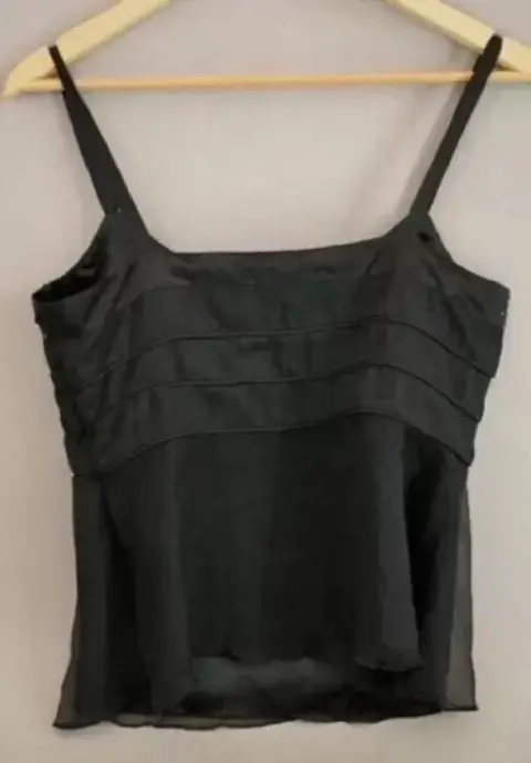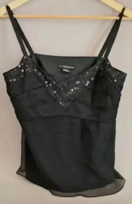 Blusas negra con lentejuela en escote, con tirantes delgados talla s, muy fresca y elegante. Muy combinable en cuanto a estilos.
