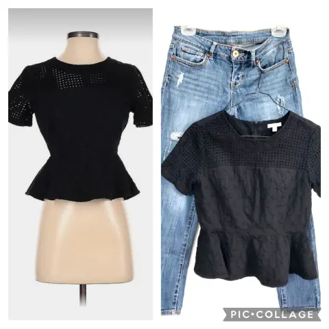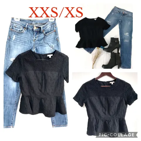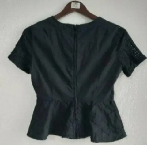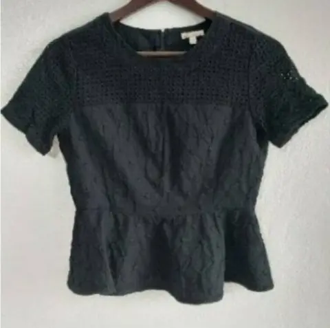 Blusa negra con peplum. Hermosisima! Luce espectacular, tono negro firme. Tiene bordado, tejido y cierre trasero. No tiene strech. Se le cortó la etiqueta interior pero es 100% algodón. Talla 0 queda bien para XXS y XS. Sin detalles, en perfecto estado.De axila a axila: 41 cmHombros: 36 cmLargo: 50 cm