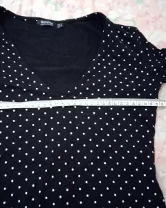 Hermosa blusa color negro con pubtitos blancos, talla CH marca Bershka, tiene cuello V, s eve muy bonita puesta, moldea la figura.