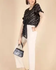 Hermosa Blusa Negra con encaje y cinta al frente muy bonita, ideal para tus outfits no la dejes pasar la tengo en talla 7 y 9