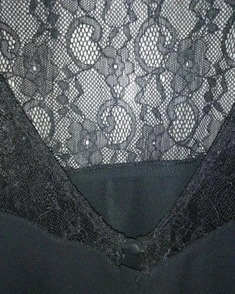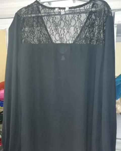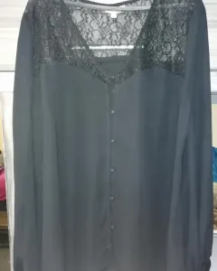 Blusa negra de gasa y encaje. Bonita blusa talla L o la puedes utilizar overzised es muy cómoda y elegante sin detalles.