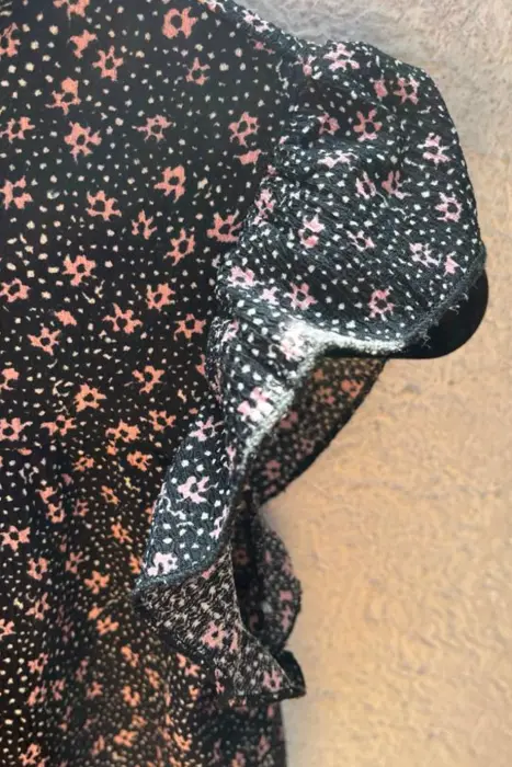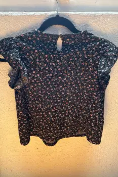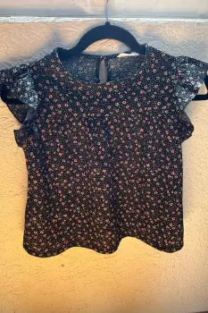 Blusa negra de manga corta floral 12-13 años. Blusa negra con estampado floral para NIÑA 12-13 años. Casi nueva, usada máximo 3 veces