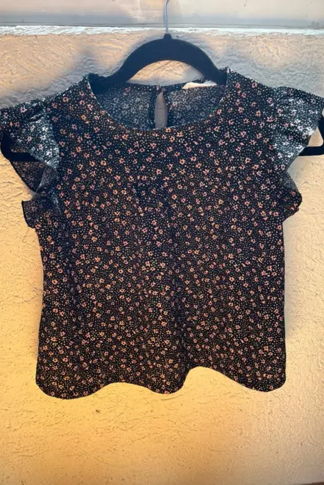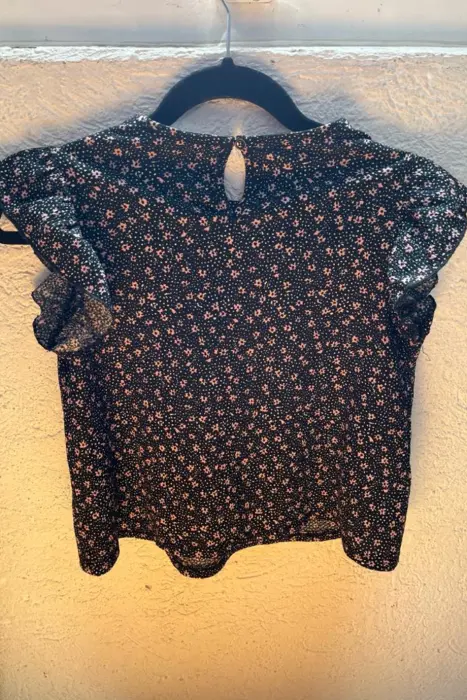 Blusa negra con estampado floral para NIÑA 12-13 años. Casi nueva, usada máximo 3 veces