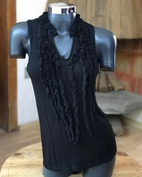 Carísima blusa De Importacion negra talla chica combinarla con Jeans o algo formal excelente caída horma muy bonito muy fresca excelente precio calidad