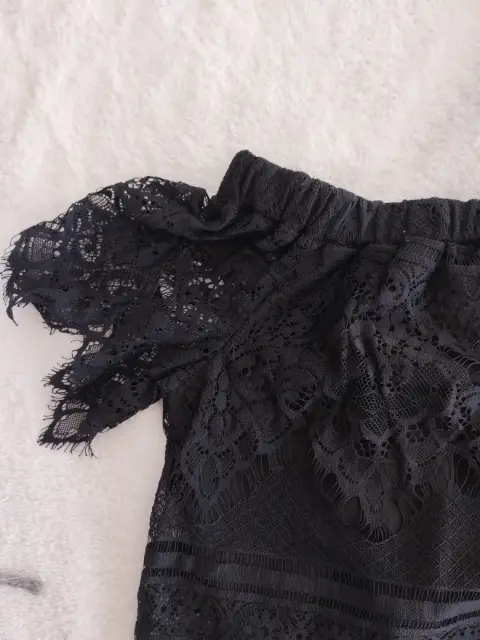 Linda blusa a los hombros negra de encaje buen estado solo una puesta