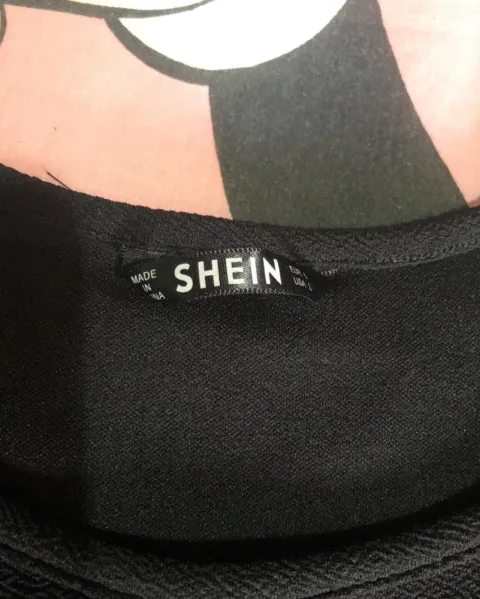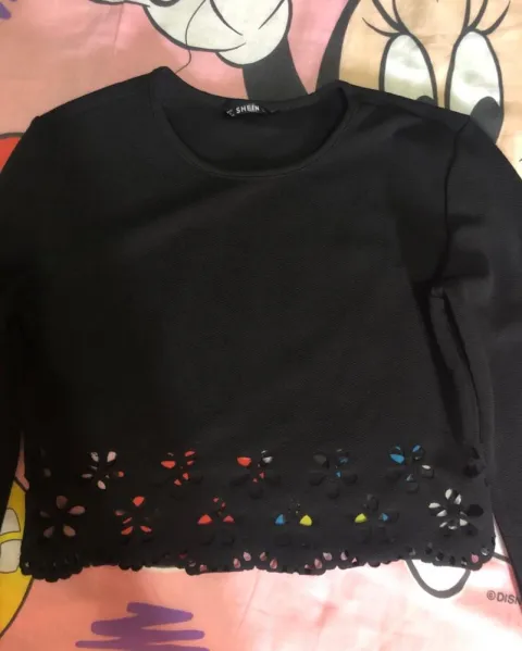 Blusa negra shein. Blusa corta de manga larga con cortes en la parte baja y en las mangas