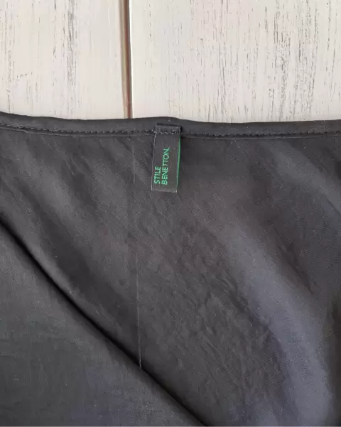 Blusa negra Stile Benetton. Talla: XS, cuello holgado, medidas aproximadas: 39 cm de axila, 33 cm de hombros y 62 cm de largo.