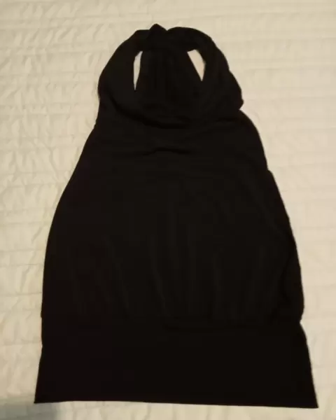 Linda Blusa negra marca Xoxo excelente cálida es cuello halter espalda coqueta de atrás y con pretina tiene elástico ancho k de ajusta a tu cintura o cadera se ve lindísima puesta...