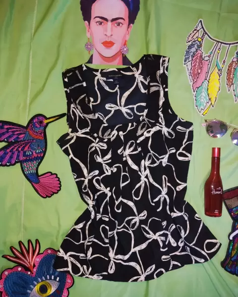 Hermosa blusa negro con beige de la marca Banana Republic, talla xs pero tambien queda chica, 100 por ciento polyester.Envío todos los fías de lunes a sábado.