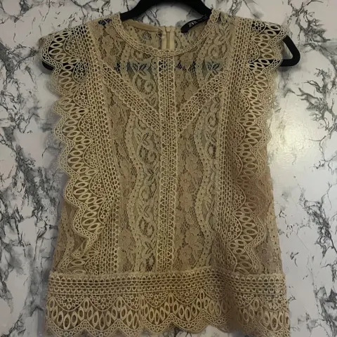 Blusa nude de encaje ZARA. Es talla XS pero queda a S, en perfecto estado, solo se usó unas 3 veces, super fresca y cómoda, tiene cierre en la parte trasera. 🌸Solo espero 2 días para que se refleje el pago en efectivo ,favor de no detener la prenda !!! Si no te interesa comprar no hagas ofertas Gracias ☺️ !!!